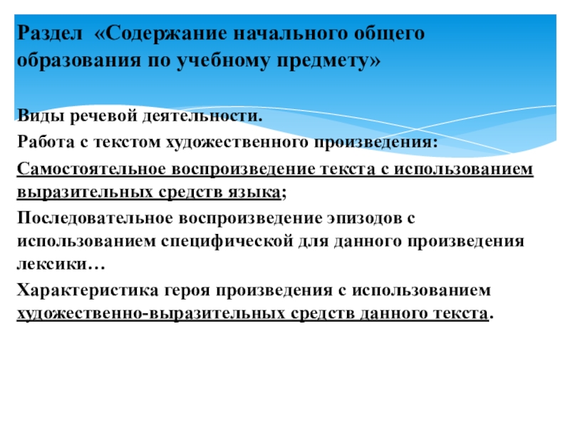 Слайд 7Раздел «Содержание начального общего образования по учебному предмету»