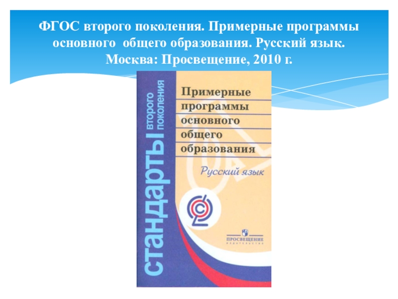 Слайд 12ФГОС второго поколения. Примерные программы основного общего образования. Русский язык. Москва: