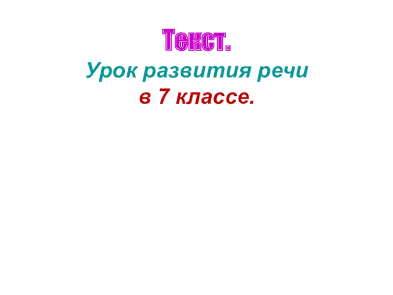Слайд 5Текст. Урок развития речи в 7 классе.