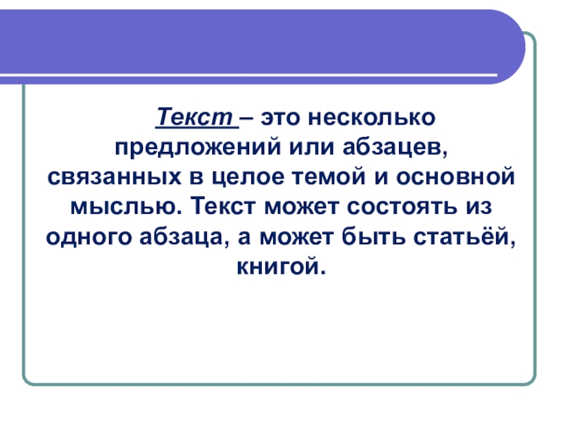 Текст – это несколько предложений или абзацев, связанных в целое темой