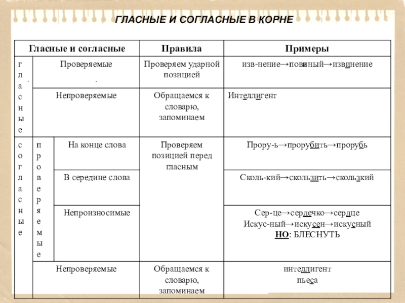 ГЛАСНЫЕ И СОГЛАСНЫЕ В КОРНЕ