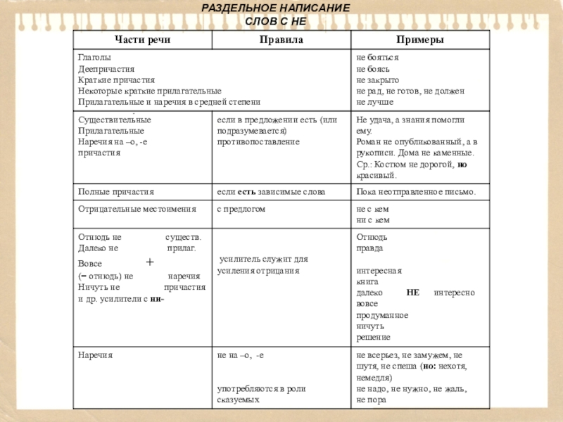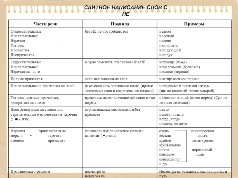 СЛИТНОЕ НАПИСАНИЕ СЛОВ С НЕ