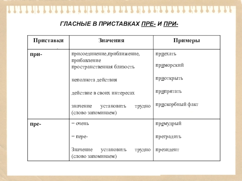 ГЛАСНЫЕ В ПРИСТАВКАХ ПРЕ- И ПРИ-