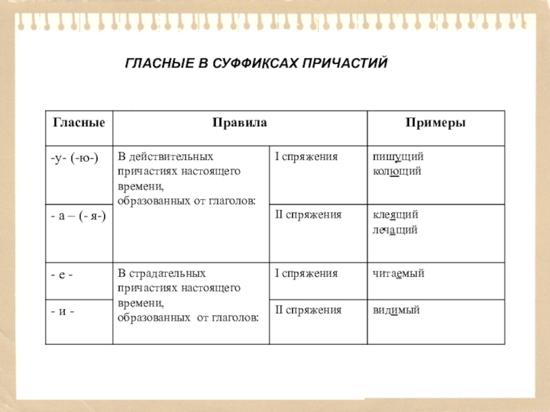 ГЛАСНЫЕ В СУФФИКСАХ ПРИЧАСТИЙ