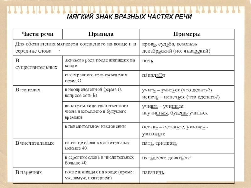 МЯГКИЙ ЗНАК ВРАЗНЫХ ЧАСТЯХ РЕЧИ