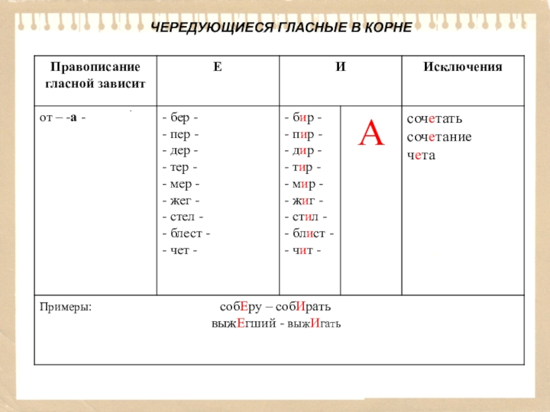 Слайд 3ЧЕРЕДУЮЩИЕСЯ ГЛАСНЫЕ В КОРНЕ