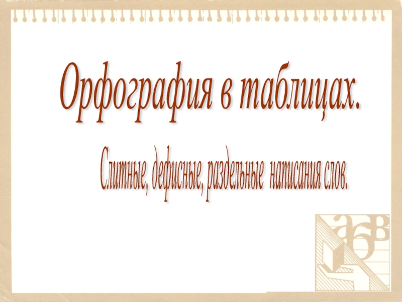 Слитные, дефисные, раздельные написания слов. Орфография в таблицах.