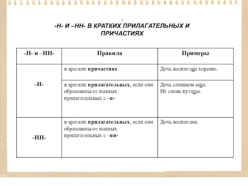 - -Н- И –НН- В КРАТКИХ ПРИЛАГАТЕЛЬНЫХ И ПРИЧАСТИЯХ