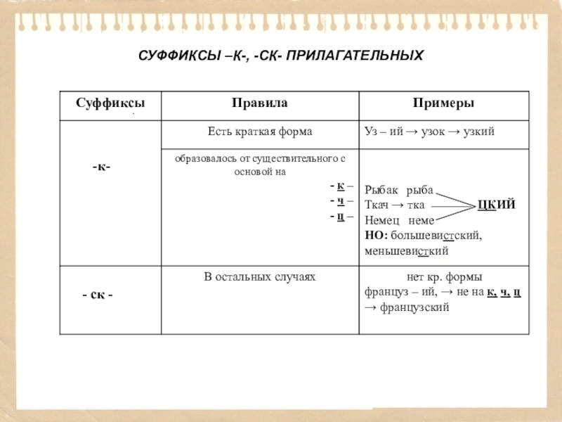 СУФФИКСЫ –К-, -СК- ПРИЛАГАТЕЛЬНЫХ