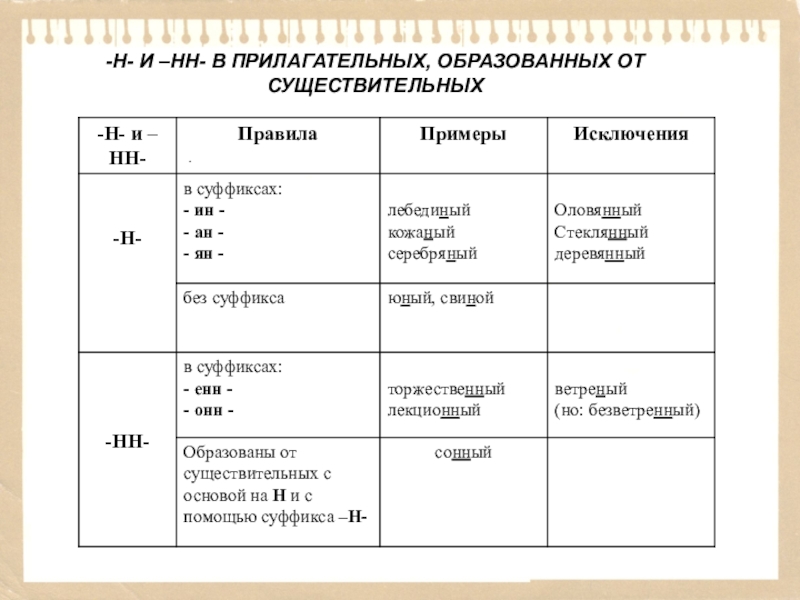 Слайд 13-Н- И –НН- В ПРИЛАГАТЕЛЬНЫХ, ОБРАЗОВАННЫХ ОТ СУЩЕСТВИТЕЛЬНЫХ