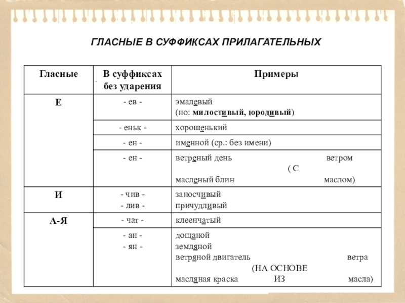 ГЛАСНЫЕ В СУФФИКСАХ ПРИЛАГАТЕЛЬНЫХ