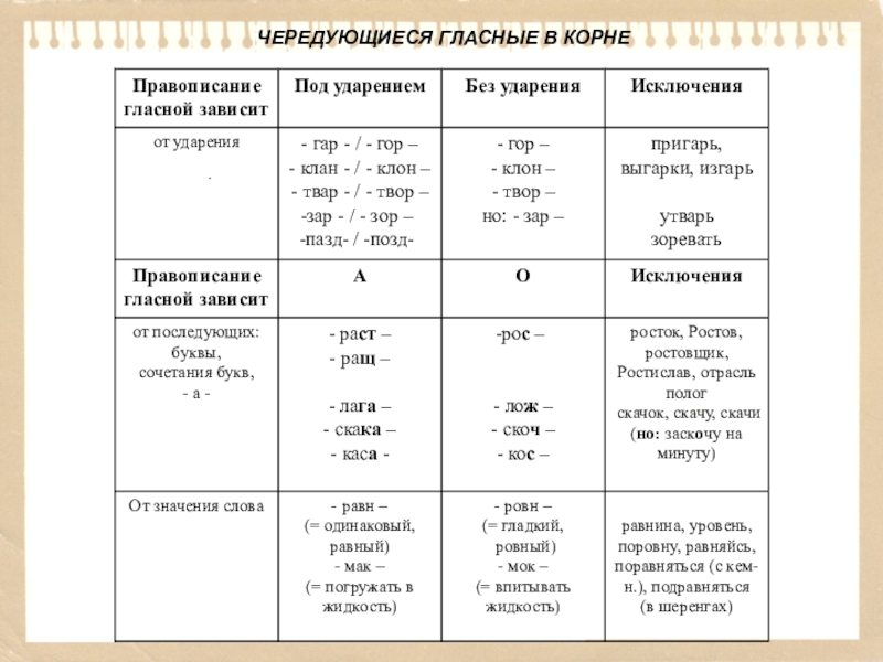 ЧЕРЕДУЮЩИЕСЯ ГЛАСНЫЕ В КОРНЕ
