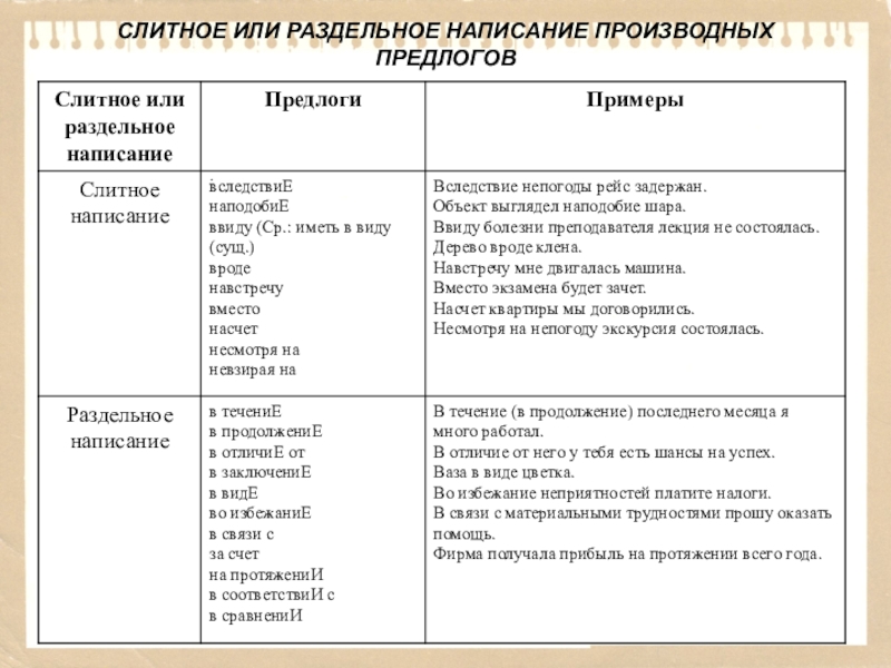 СЛИТНОЕ ИЛИ РАЗДЕЛЬНОЕ НАПИСАНИЕ ПРОИЗВОДНЫХ ПРЕДЛОГОВ