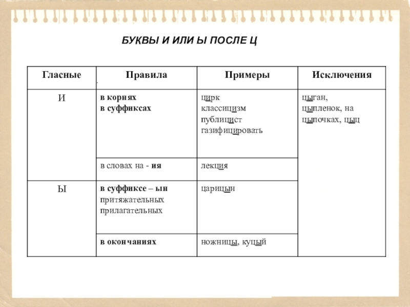 БУКВЫ И ИЛИ Ы ПОСЛЕ Ц