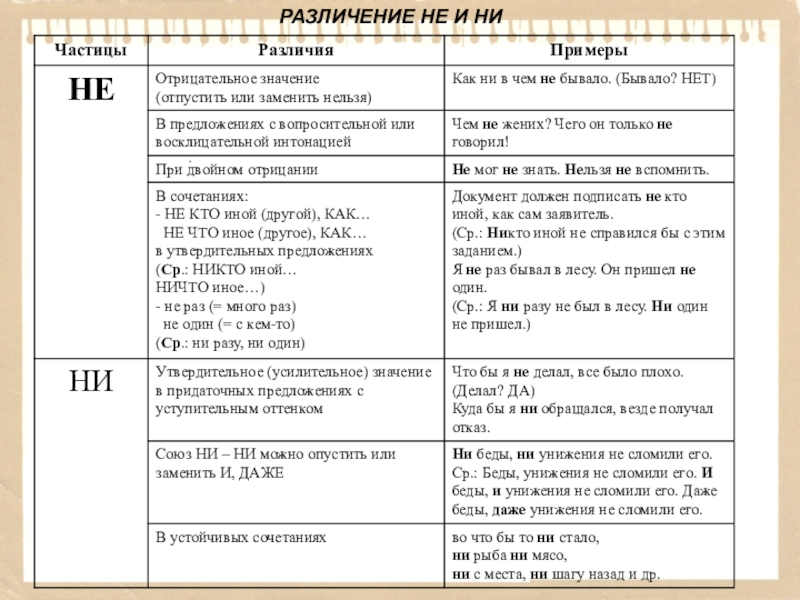 РАЗЛИЧЕНИЕ НЕ И НИ