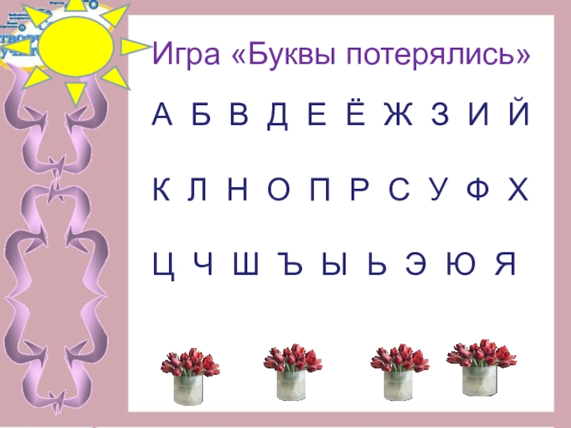Слайд 5Игра «Буквы потерялись»