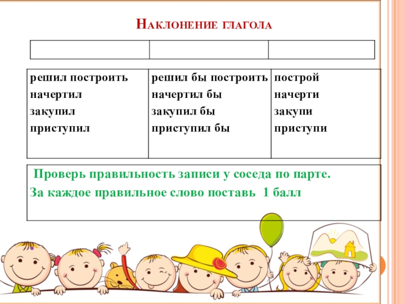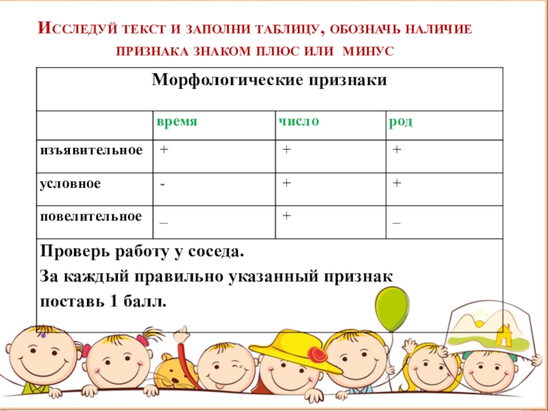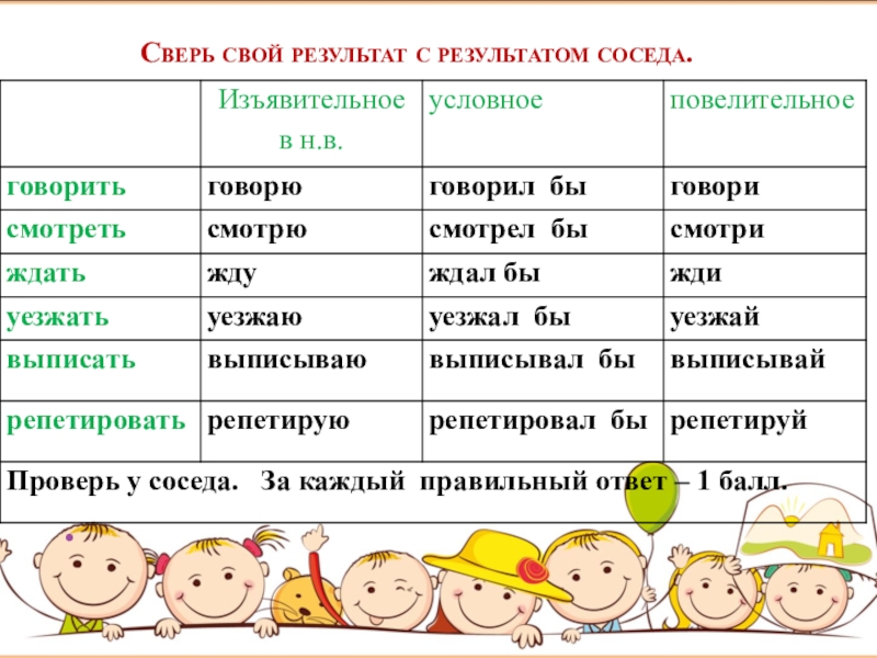 Посчитай, сколько баллов набрал твой сосед за урок и выстави отметку: