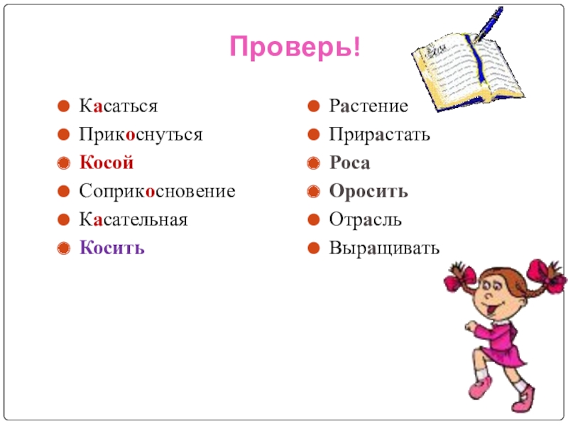 Проверь! КасатьсяПрикоснутьсяКосойСоприкосновениеКасательнаяКоситьРастение ПрирастатьРосаОроситьОтрасльВыращивать