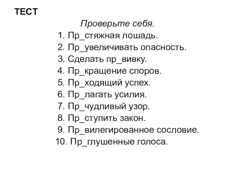 2. Пр..подавать, пр..странный, пр..поднести, пр..рванный