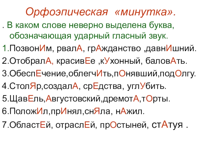 1.ПозвонИм, рвалА, грАжданство ,давнИшний.