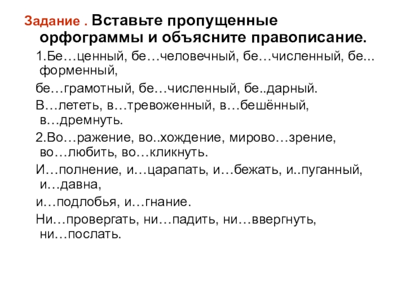 Слайд 11Задание . Вставьте пропущенные орфограммы и объясните правописание.