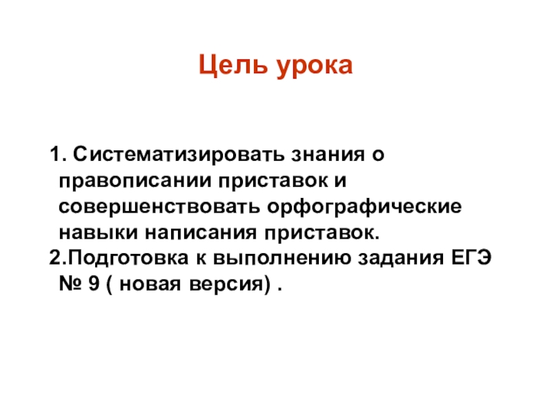 1. Систематизировать знания о правописании приставок и совершенствовать