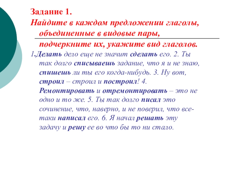 Найдите в каждом предложении глаголы, объединенные в видовые пары, подчеркните