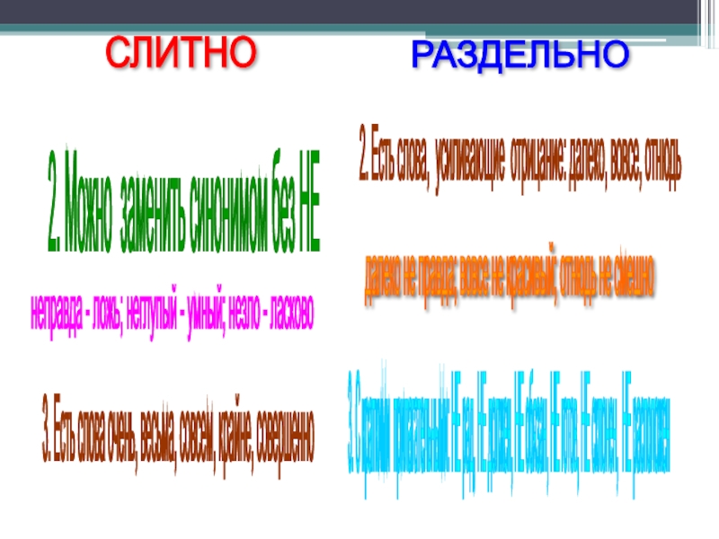 2. Есть слова, усиливающие отрицание: далеко, вовсе, отнюдь