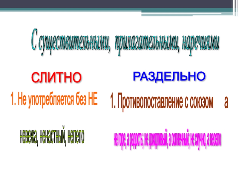 не горе, а радость; не дождливый, а солнечный; не скучно, а весело