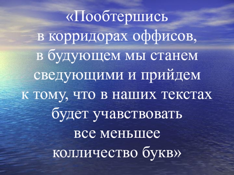 Это сайт презентаций, где можно хранить и обмениваться своими презентациями, докладами, проектами, шаблонами в формате PowerPoint с другими пользователями. Мы помогаем школьникам, студентам, учителям, преподавателям хранить и обмениваться учебными материалами.