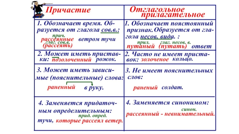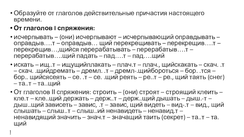 (они) исчерпывают – исчерпывающий оправдывать – оправдыв….т – оправдыв… щий перекрещивать – перекрещив….т – перекрещив…,щийся перерабатывать – перерабатыв….т – перерабатыв….щий падать – пад….т – пад….щий
