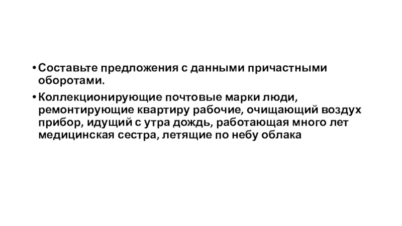 Слайд 12Составьте предложения с данными причастными оборотами.