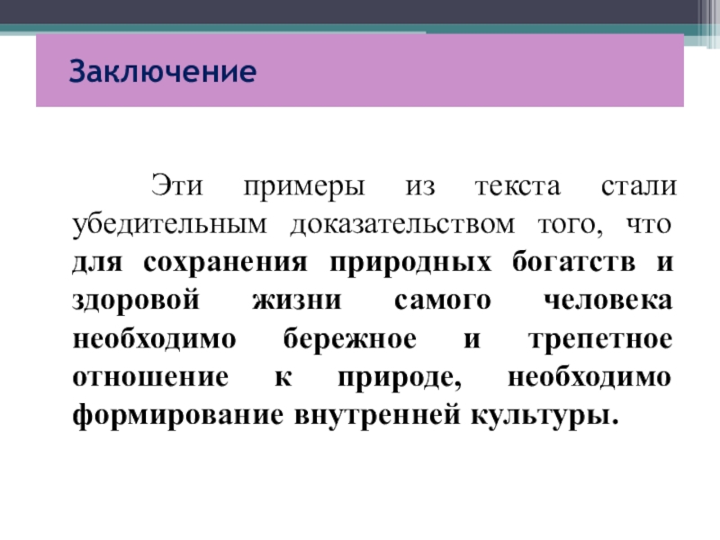 доказательством того, что для сохранения природных богатств и здоровой жизни самого человека необходимо бережное и трепетное отношение к природе, необходимо формирование внутренней культуры.