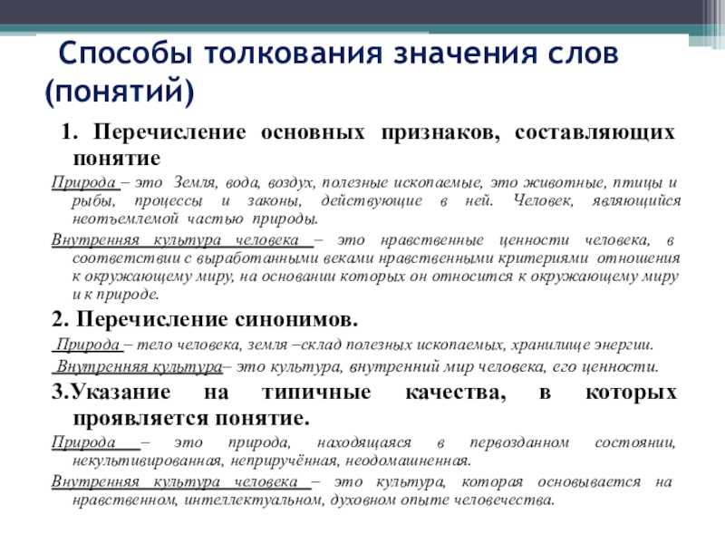 Внутренняя культура человека – это нравственные ценности человека, в соответствии с выработанными веками нравственными критериями отношения к окружающему миру, на основании которых он относится к окружающему миру и к природе.