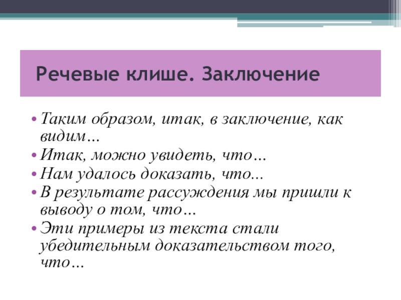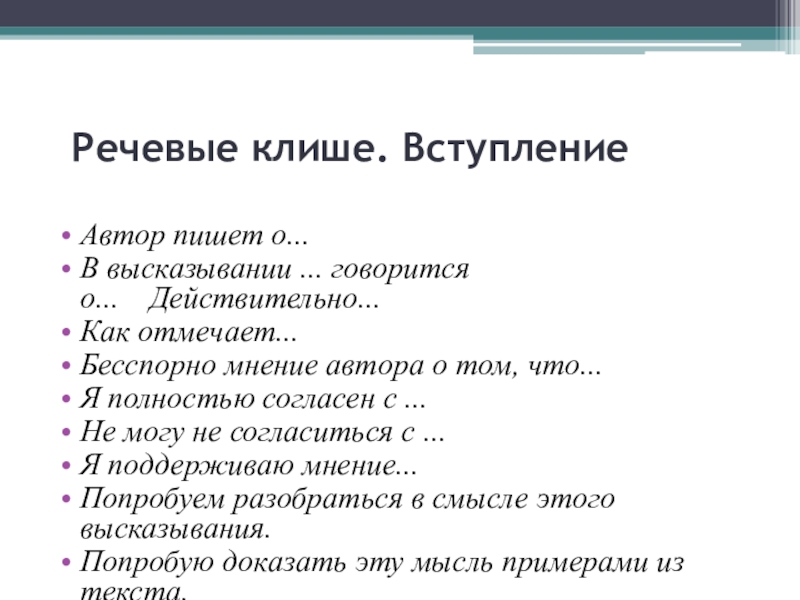 Способы написания вступления, основной части, вывода (использование речевых клише)