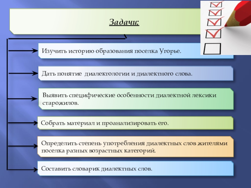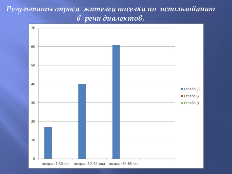 Определить степень употребления диалектных слов жителями поселка разных возрастных категорий.