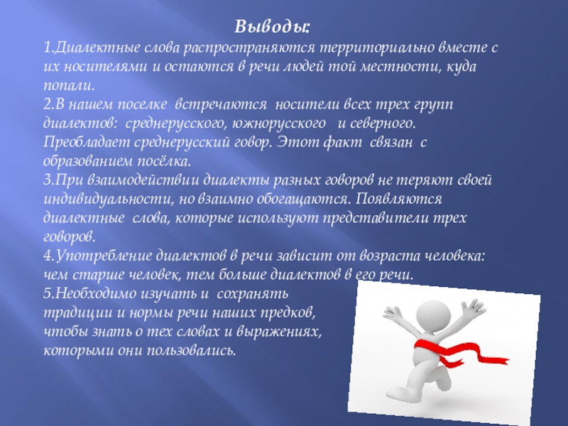 Из-за влияния литературного языка на речь, диалекты постепенно уходят из речи, исчезают, их нужно сохранить для будущих поколений.