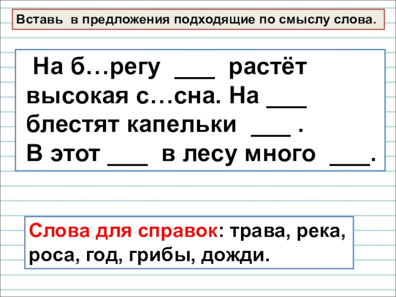Слова для справок: трава, река,