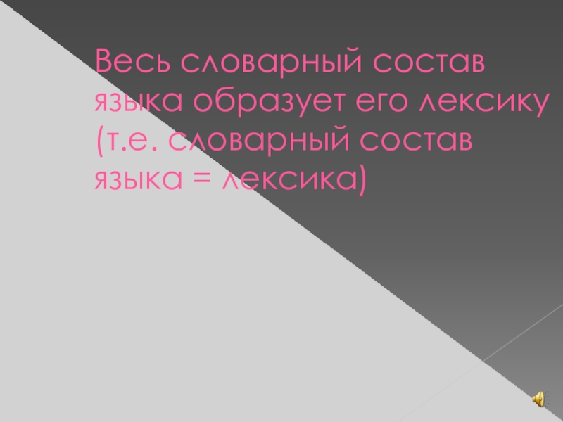 Слайд 2Весь словарный состав языка образует его лексику(т.е. словарный состав языка =