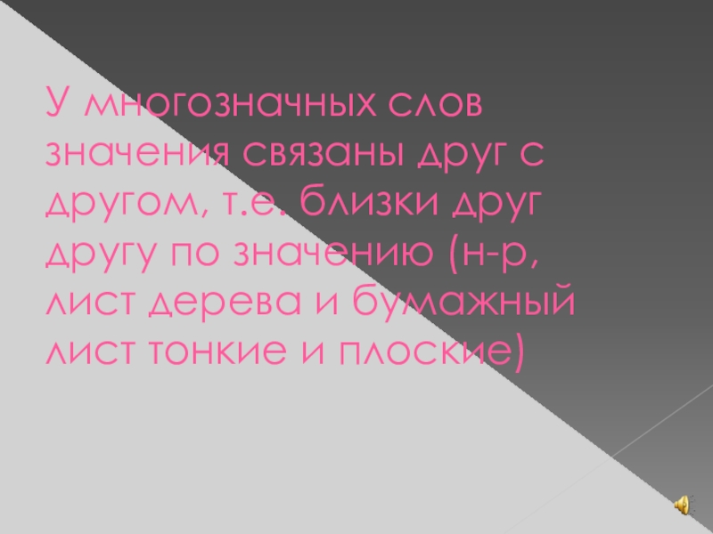 Слайд 5У многозначных слов значения связаны друг с другом, т.е. близки друг