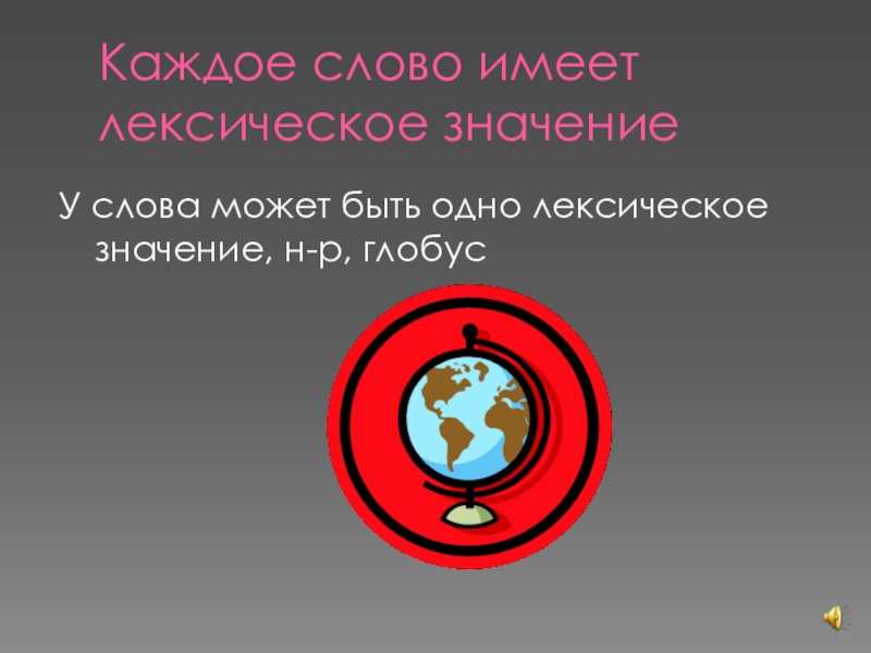 Каждое слово имеет лексическое значениеУ слова может быть одно лексическое значение, н-р, глобус