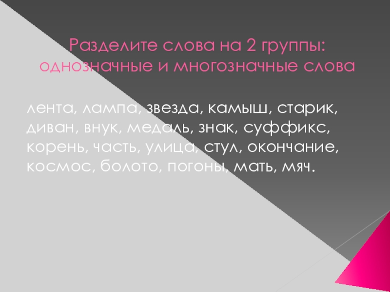 Слайд 6Разделите слова на 2 группы: однозначные и многозначные слова