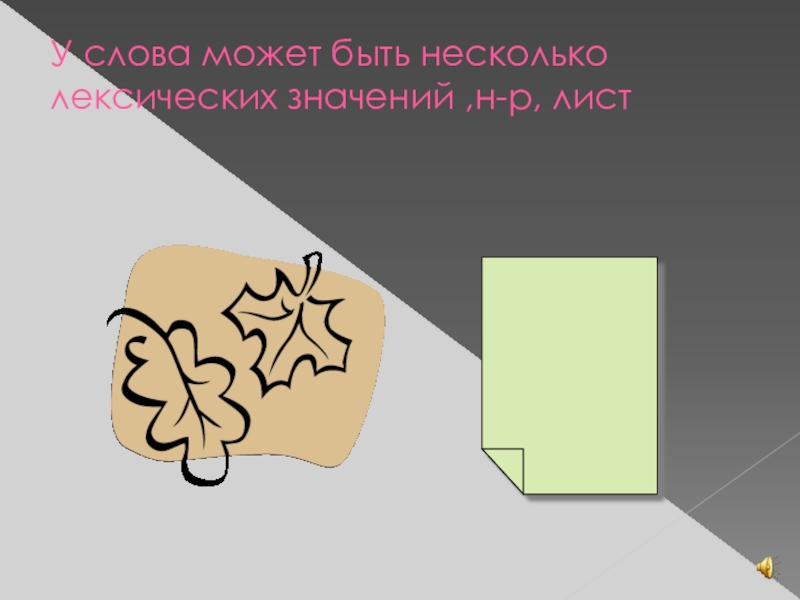 Слайд 4У слова может быть несколько лексических значений ,н-р, лист