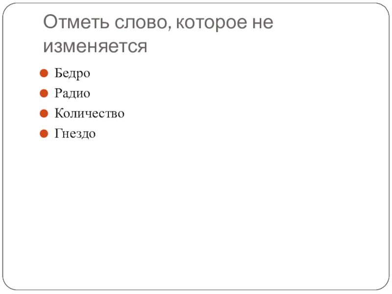 Отметь слово, которое не изменяетсяБедроРадиоКоличествоГнездо