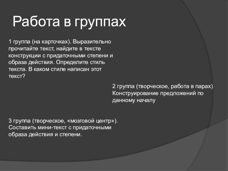 2 группа (творческое, работа в парах) Конструирование предложений по данному началу