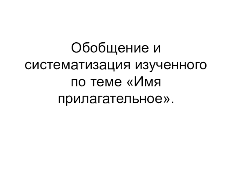 Слайд 1Обобщение и систематизация изученного по теме «Имя прилагательное».