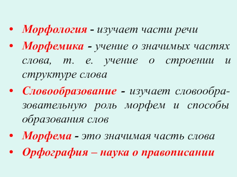 Словообразование - изучает словообра-зовательную роль морфем и способы образования слов
