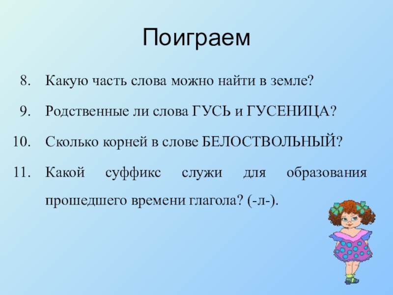 Какой суффикс служи для образования прошедшего времени глагола? (-л-).