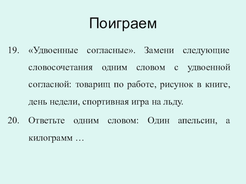 «Удвоенные согласные». Замени следующие словосочетания одним словом с удвоенной согласной: товарищ
