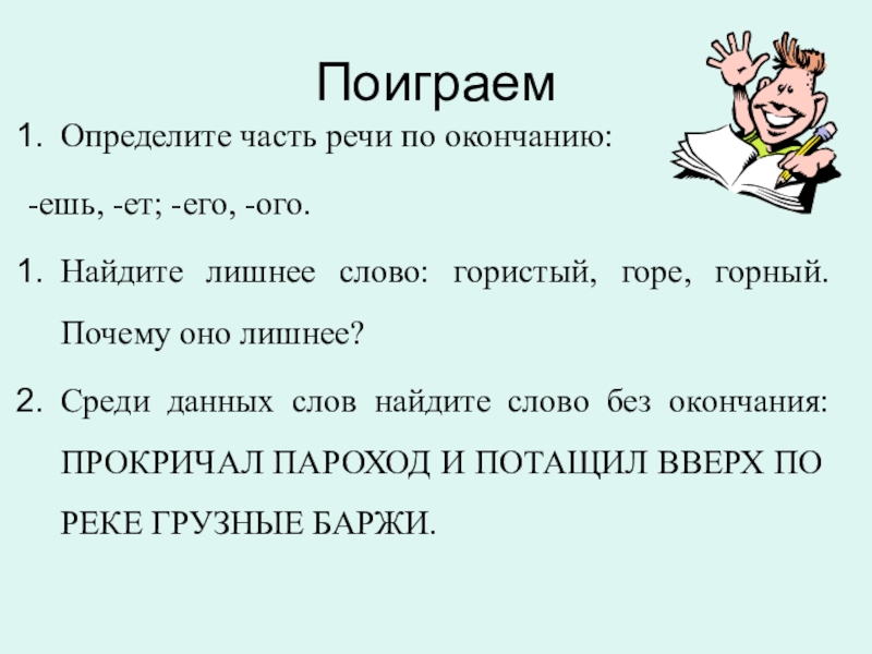Среди данных слов найдите слово без окончания: ПРОКРИЧАЛ ПАРОХОД И ПОТАЩИЛ ВВЕРХ ПО РЕКЕ ГРУЗНЫЕ БАРЖИ.